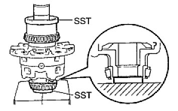 (a) Using SST and a press, install the rear bearing outer race to the differential carrier case.