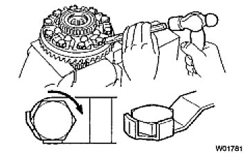 (a) Using a chisel and hammer, stake the drive pinion nut.