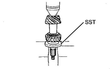 (a) Using SST, remove the drive pinion tapered roller bearing from the drive pinion.
