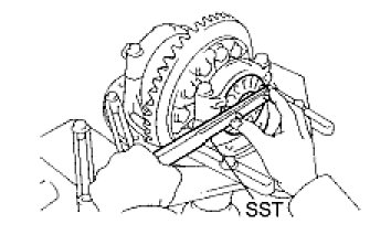 (d) Using SST to hold the drive pinion companion flange, tighten the nut.