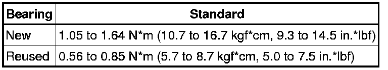 Drive pinion preload plus 0.39 to 0.59 N*m (4.0 to 6.0 kgf*cm, 3.5 to 5.2 in.*lbf)