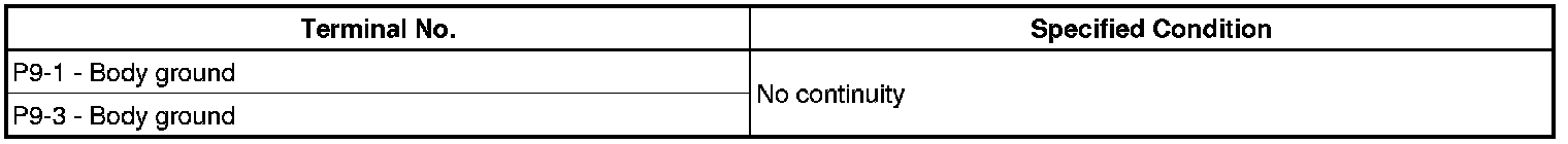 (c) Check the continuity between the P9 switch connector and the body ground.