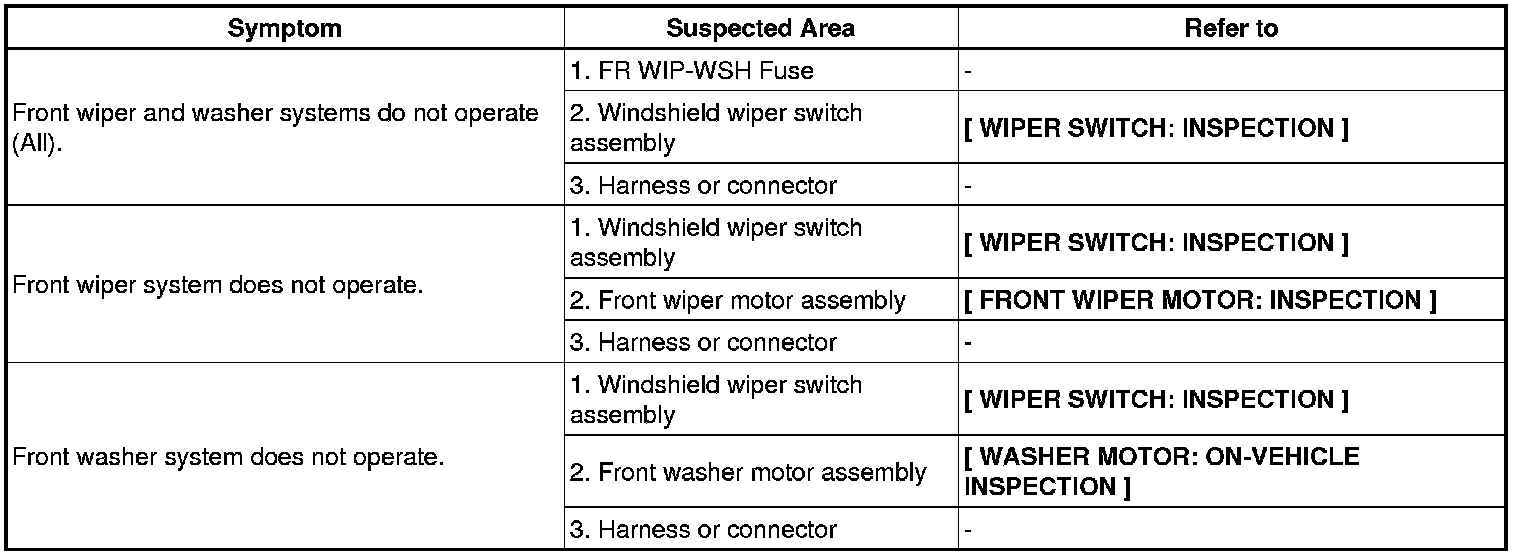 WIPER AND WASHER: WIPER AND WASHER SYSTEM: PROBLEM SYMPTOMS TABLE