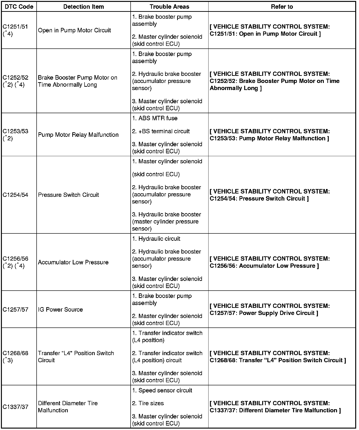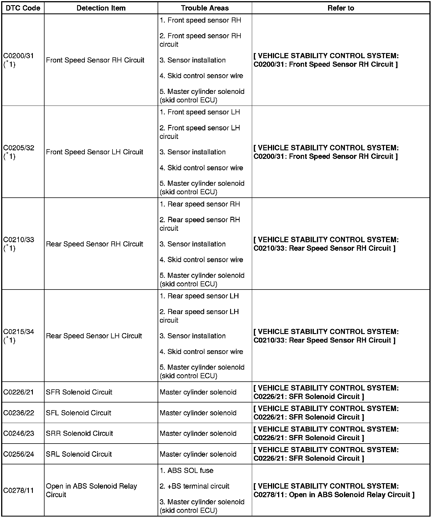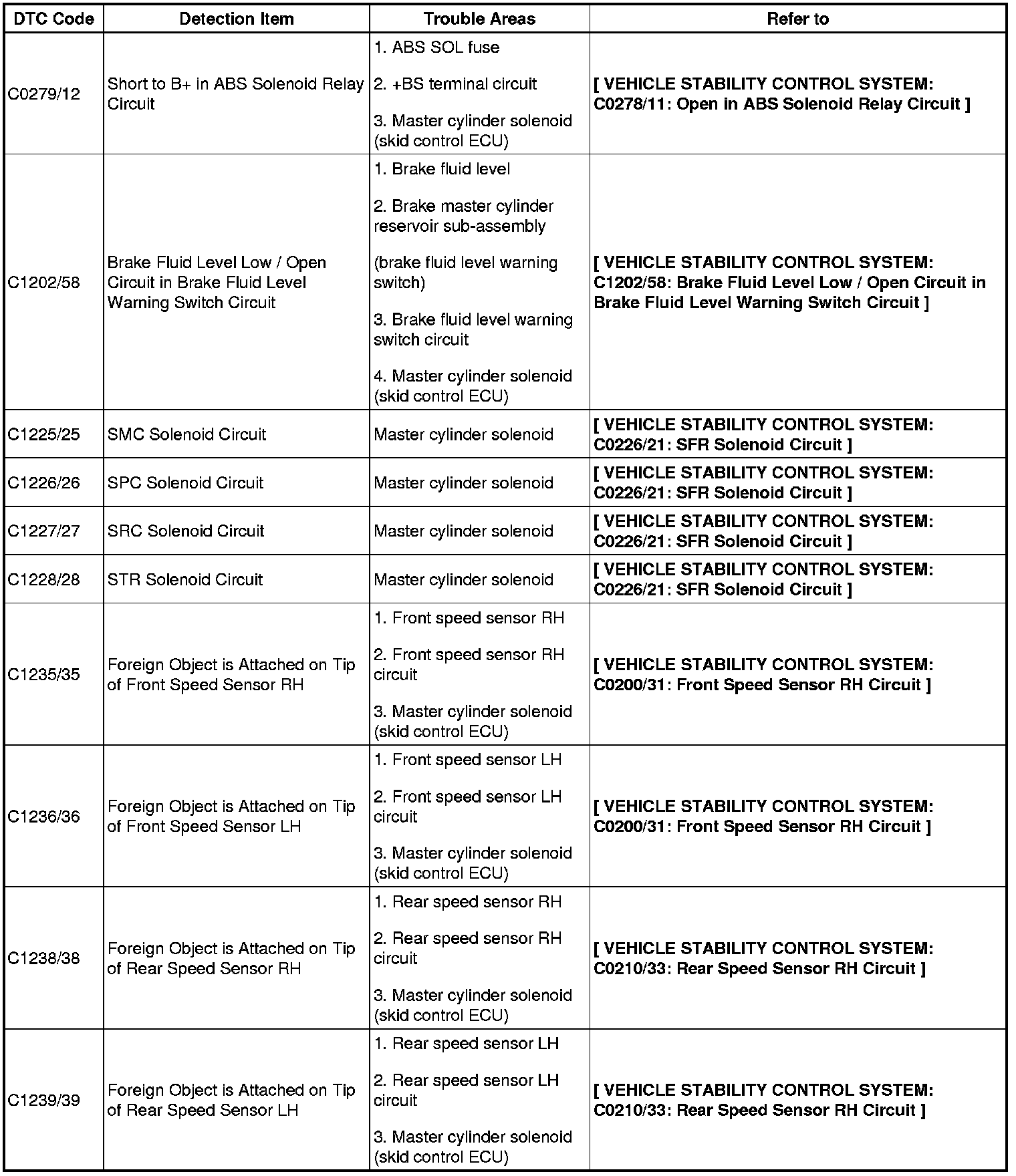 DTC chart of ABS