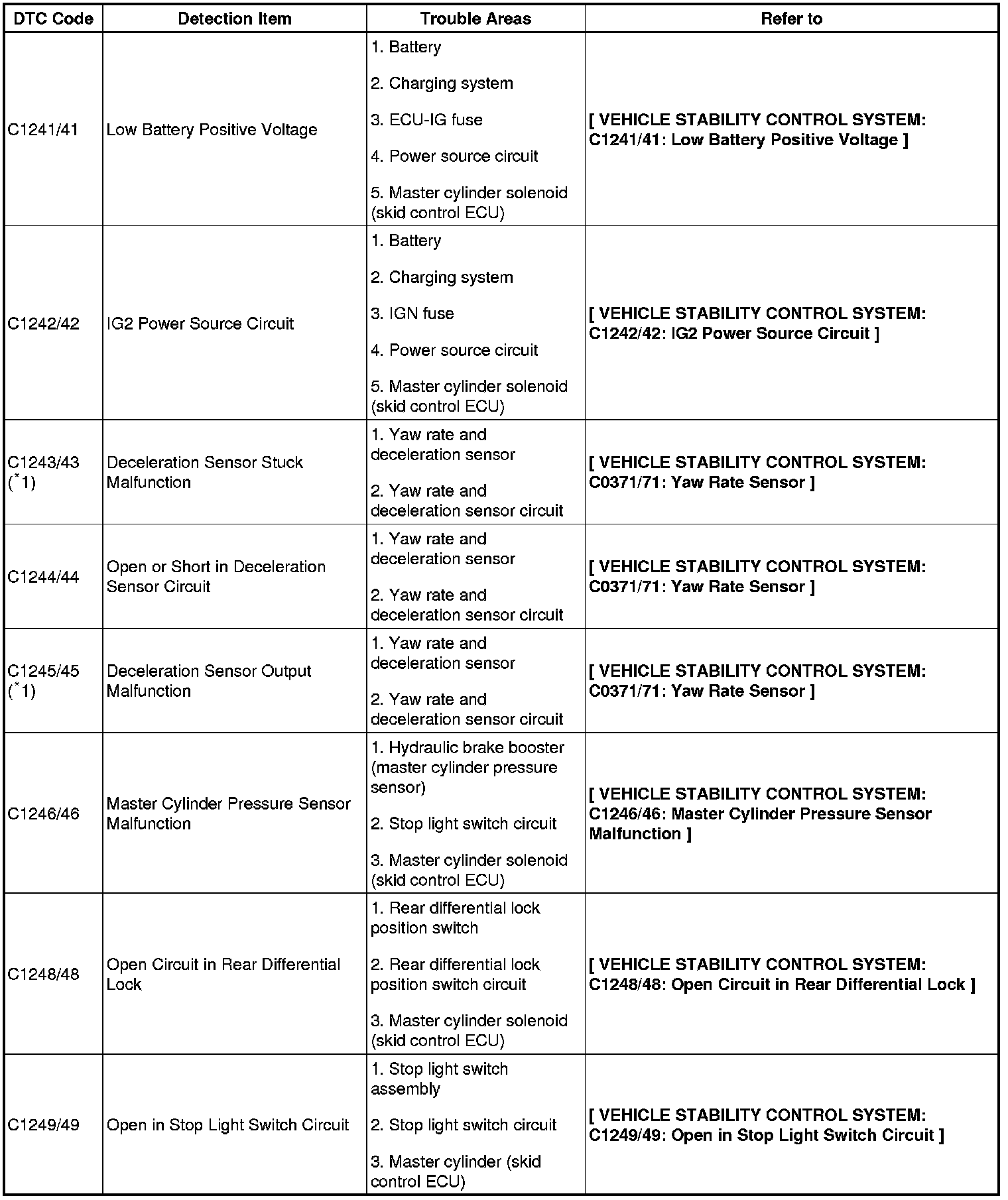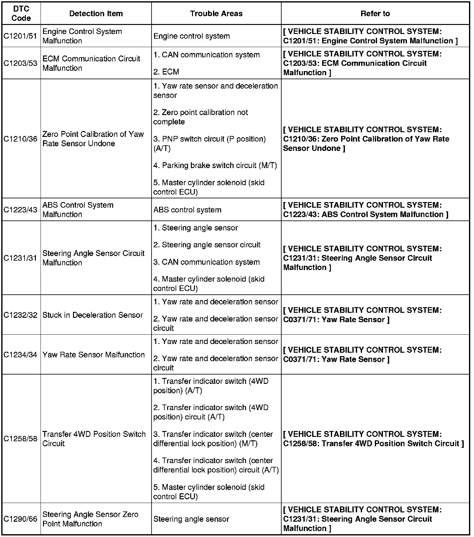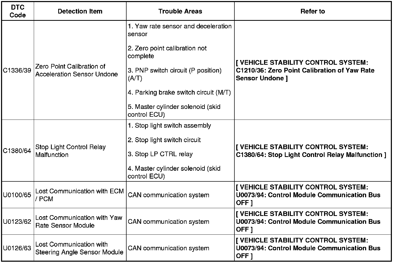 DTC chart of VSC
