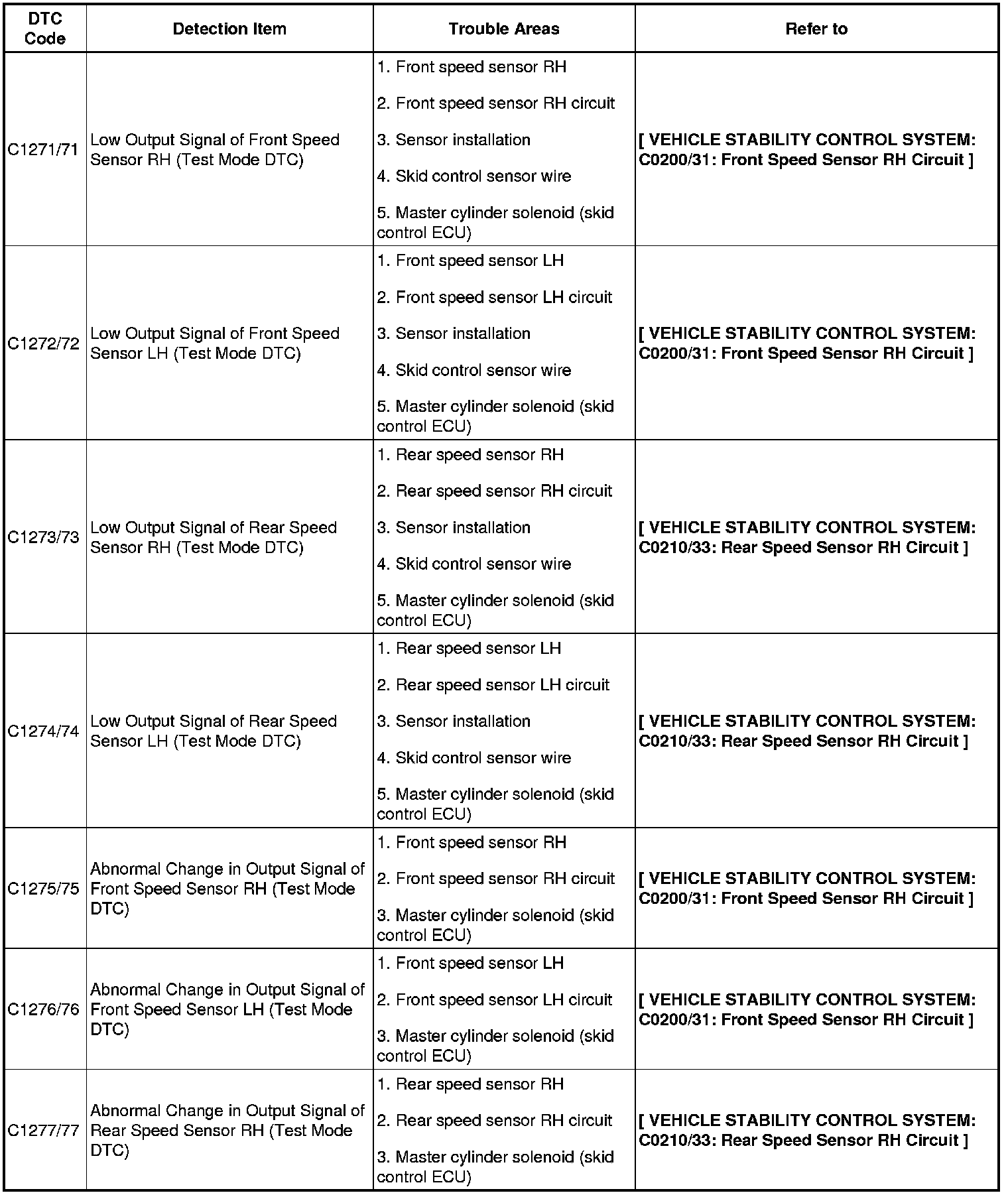 Test Mode DTC of VSC