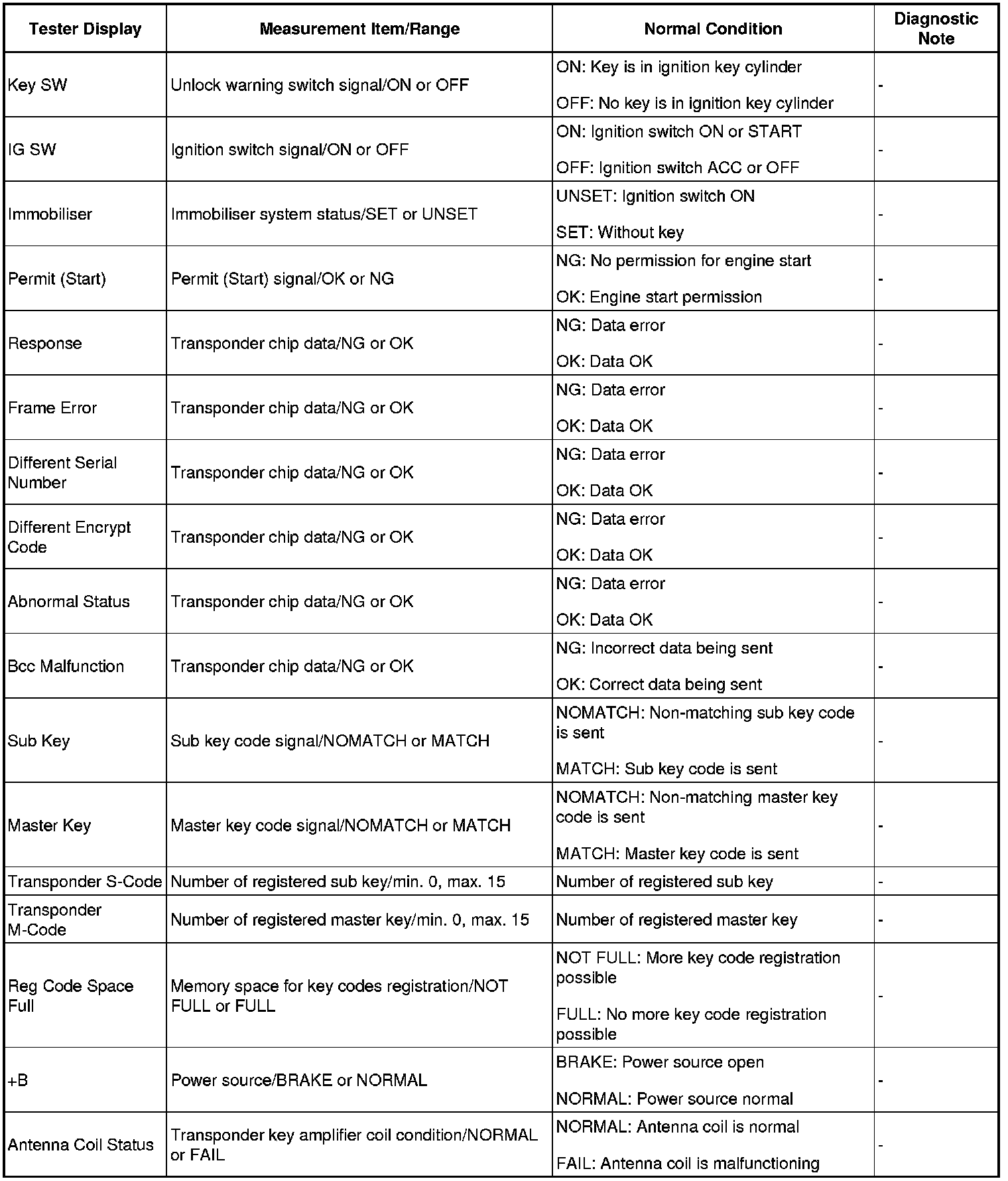 ENGINE IMMOBILISER: ENGINE IMMOBILISER SYSTEM: DATA LIST / ACTIVE TEST