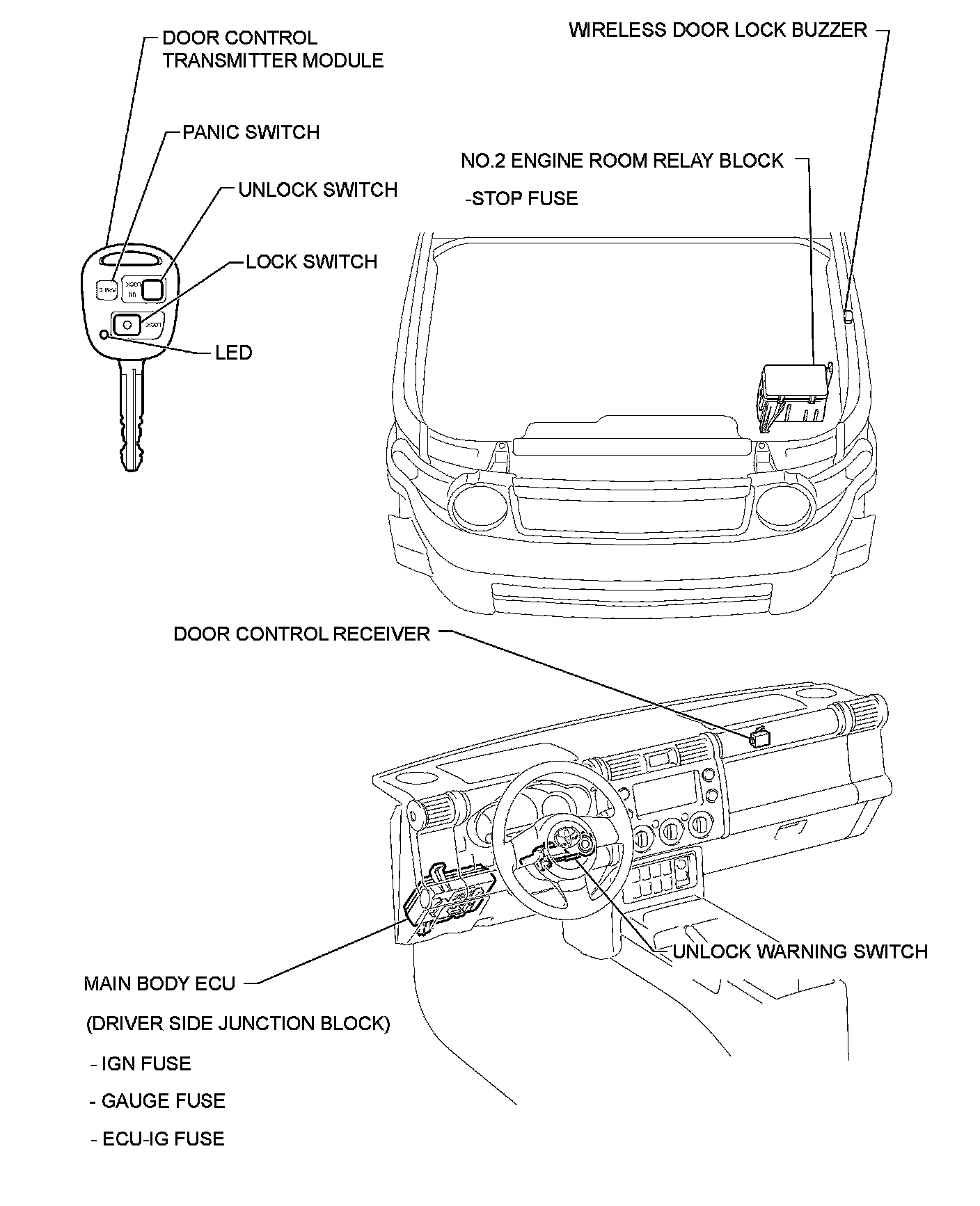 DOOR LOCK: WIRELESS DOOR LOCK CONTROL SYSTEM: PARTS LOCATION