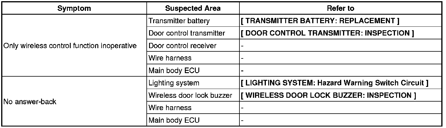 HINT: Use the table below to help determine the causes of the problem symptom. The potential cases of the symptoms are listed in order of probability in the "Suspected Area" column of the table. Check each symptom by checking the suspected areas in the order they are listed. Replace parts as necessary.