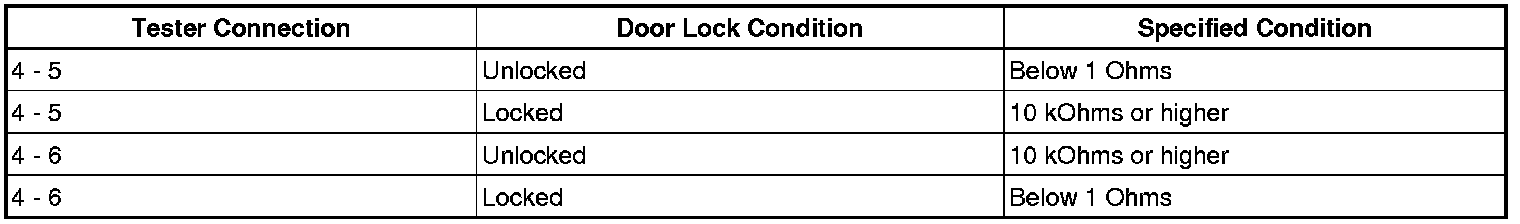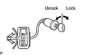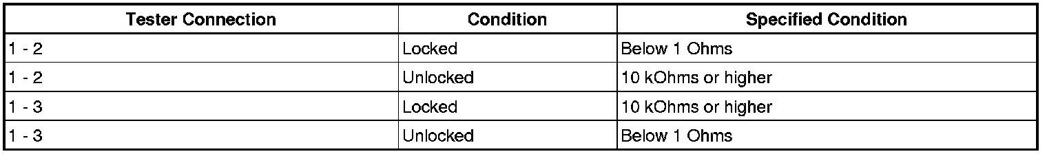 (1) Using an ohmmeter, measure the resistance between the terminals when the cylinder is operated with a key.