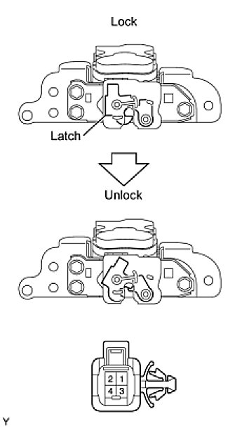 (1) Using an ohmmeter, measure the resistance between the terminals when the latch is operated with a screwdriver.