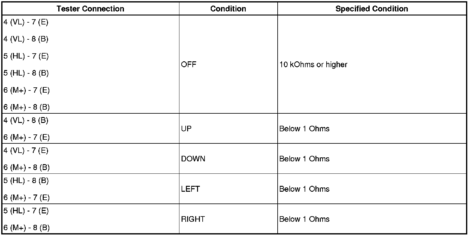 (2) Using an ohmmeter, measure the resistance and check the results in accordance with the value(s) in the table below.