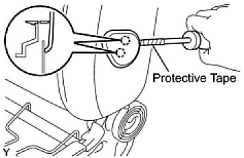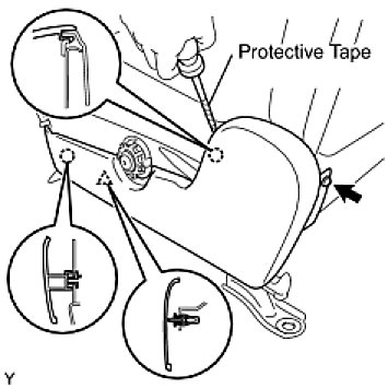(a) Using a screwdriver with its tip wrapped in protective tape, disengage the claw and remove the reclining adjuster release handle.