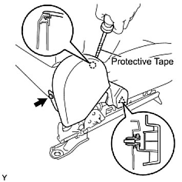 (a) Using a screwdriver with its tip wrapped in protective tape, disengage the 2 claws and remove the front seat armrest cover.