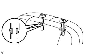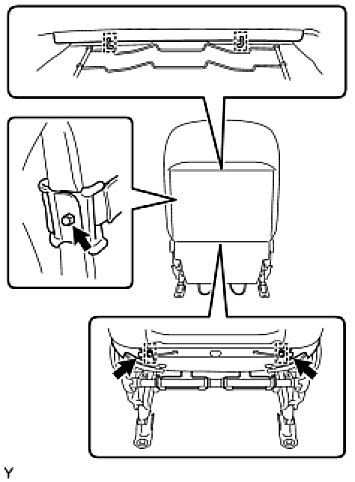 (d) Disengage the 2 claws and remove the front seat headrest support.