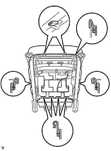 (a) Engage the 2 claws and the 7 hooks and install the front seat cushion.
