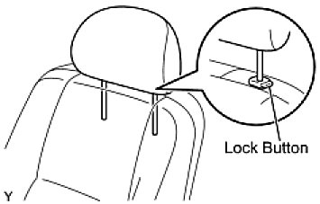 (a) Push in the lock button of the front seat headrest support and install the front seat headrest.