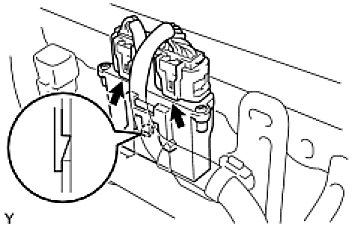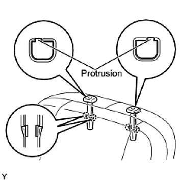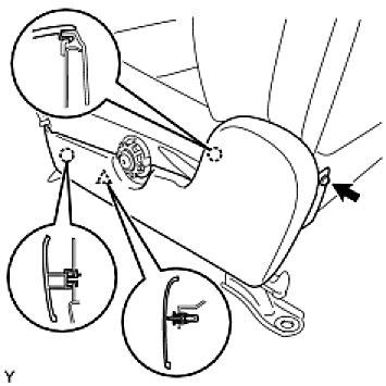 (a) Align the protruding portion of the front seat headrest support with the installation groove of the front seatback frame.