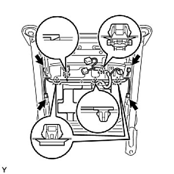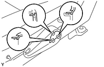 (a) Engage the 2 claws and the clip and install the front seat cushion outside shield.