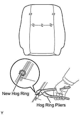 (a) Using hog ring pliers, install the front seatback cover with 5 new hog rings.