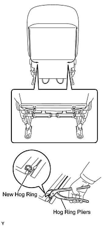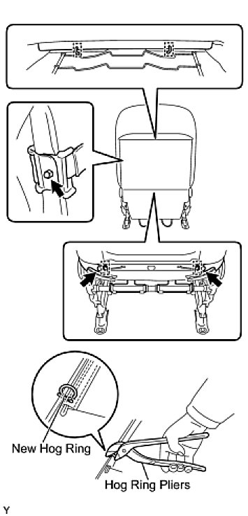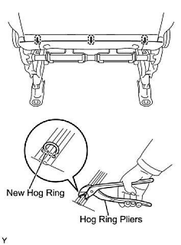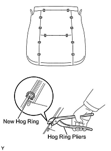 (a) Using hog ring pliers, install the front seat cushion cover with 12 new hog rings.