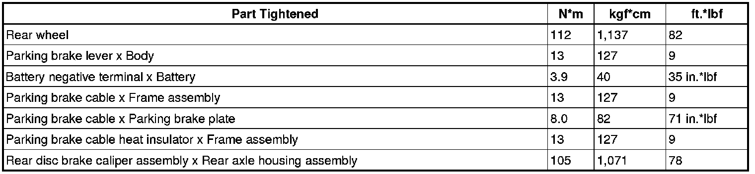 SERVICE SPECIFICATIONS: PARKING BRAKE: TORQUE SPECIFICATIONS