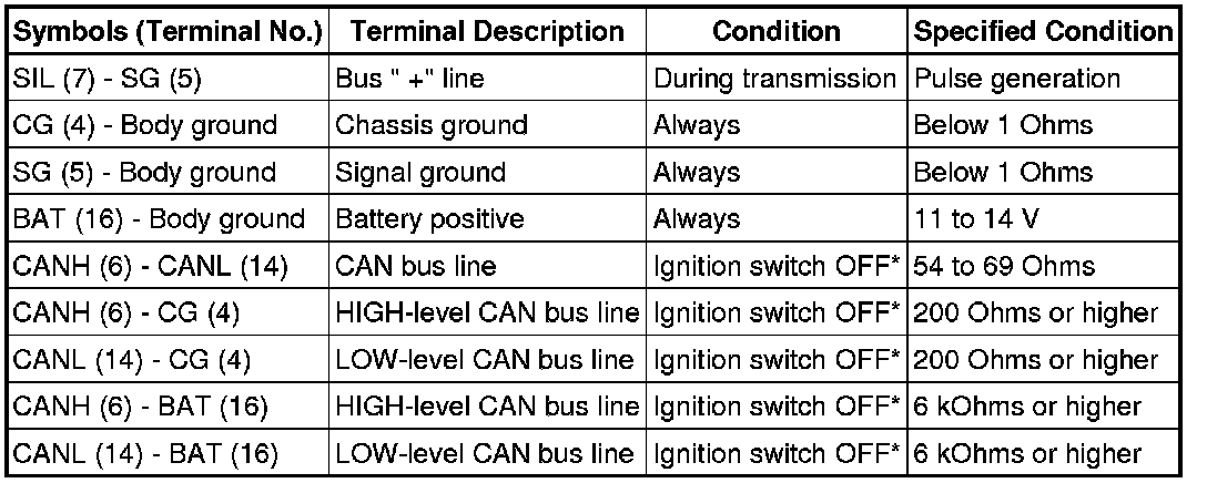 NOTE: *: Before measuring the resistance, leave the vehicle as is for at least 1 minute and do not operate the ignition switch, any other switches or the doors.