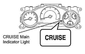 (b) Check that the CRUISE MAIN indicator light comes on when the cruise control main switch ON-OFF button is pushed on, and that the indicator light goes off when the ON-OFF button is pushed off.