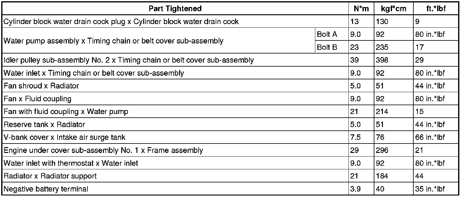 SERVICE SPECIFICATIONS: 1GR-FE COOLING: TORQUE SPECIFICATIONS