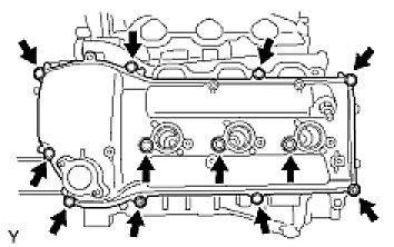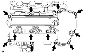 (a) Remove the 10 bolts, 3 seal washers and 2 nuts, then remove the cylinder head cover.
