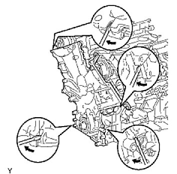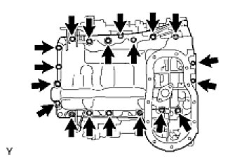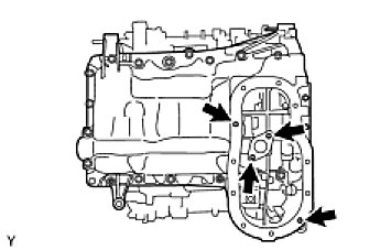 - Be careful not to damage the contact surface of the oil pan and oil pan No. 2.