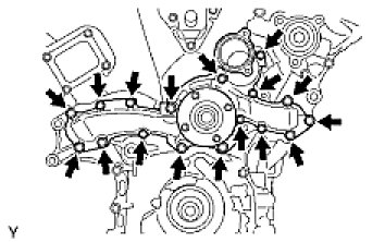 (a) Remove the 17 bolts, then remove the water pump and gasket.
