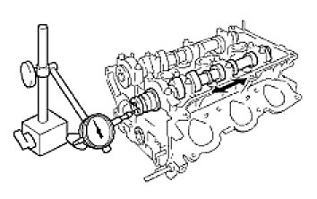 (a) Using a dial indicator, measure the thrust clearance while moving the camshaft back and forth.