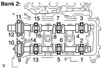 (2) Remove the 8 bearing caps, then remove the 2 camshafts.
