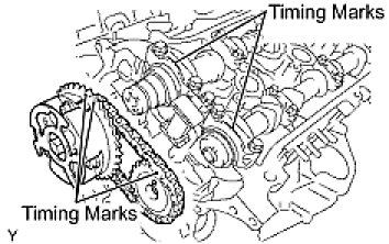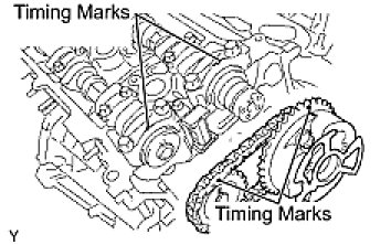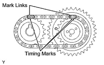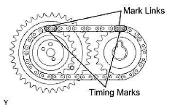 (a) Align the yellow mark links with the timing marks (1 dot mark and 2 dot marks) on the camshaft timing gears as shown in the illustration.