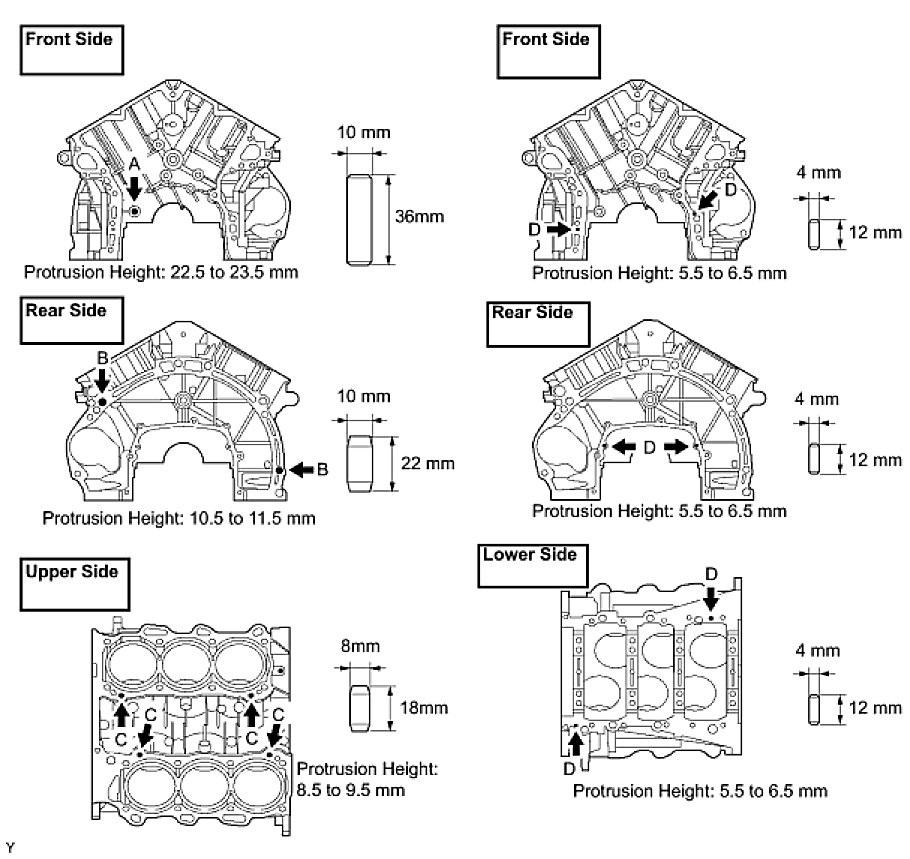 - Do not apply engine oil to the bearing installation surfaces of the cylinder block and the back side of the bearings.