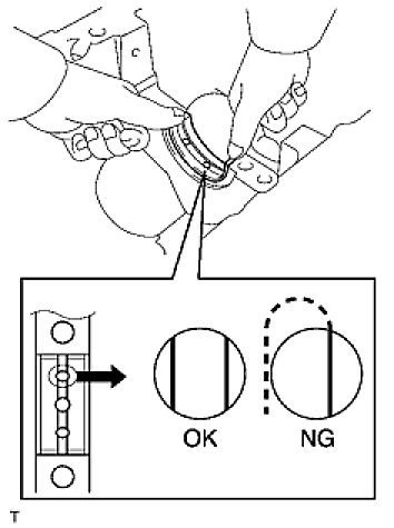 HINT: Check that the end gap of the snap ring does not overlap with the pin hole cutout portion of the piston.