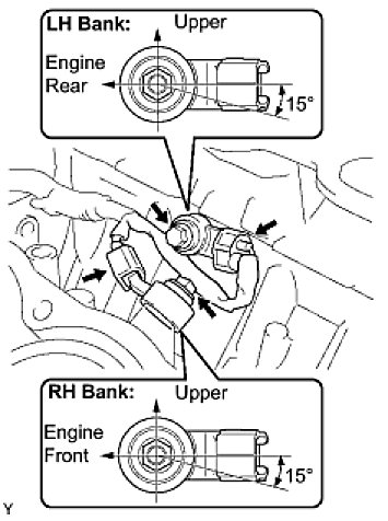 (a) Install the 2 knock sensors with the 2 bolts as shown in the illustration.