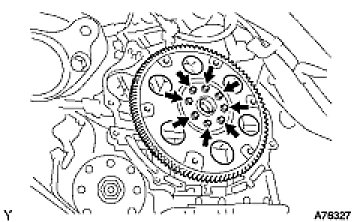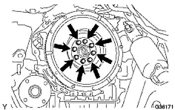 (b) Remove the 8 bolts, then remove the flywheel and 2 spacers.