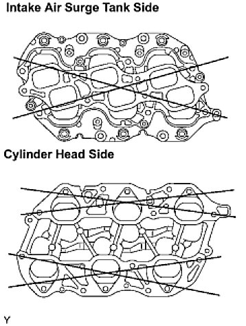 (a) Using a precision straight edge and feeler gauge, measure the warpage of the contact surfaces of the cylinder head and intake air surge tank.