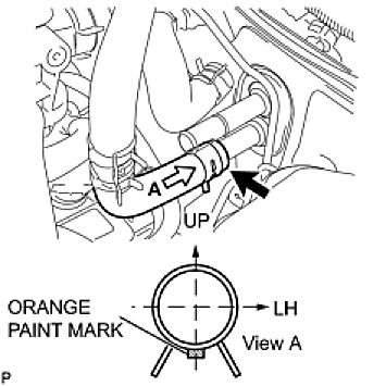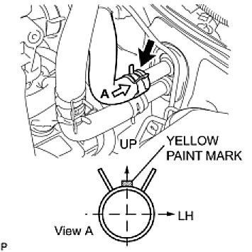 NOTE: Perform the installation with the hose clip and mark at the correct angle as shown in the illustration.