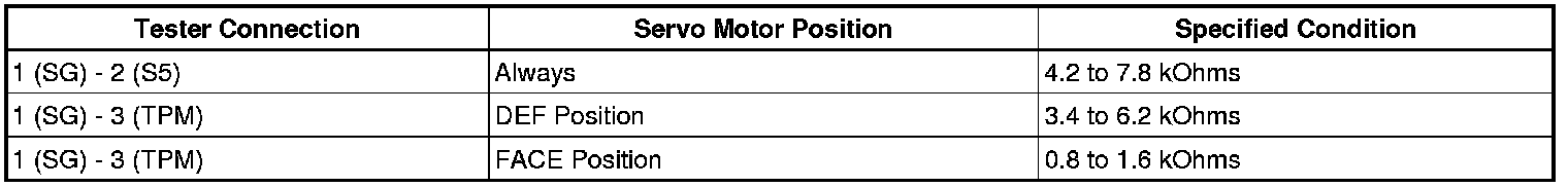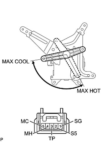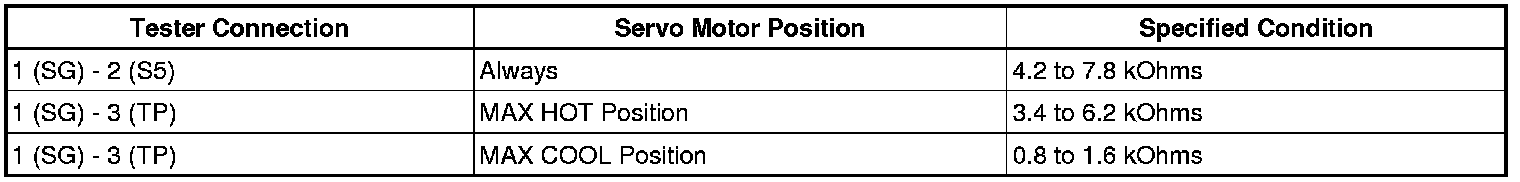 If the result is not as specified, replace the air mix control servo motor.