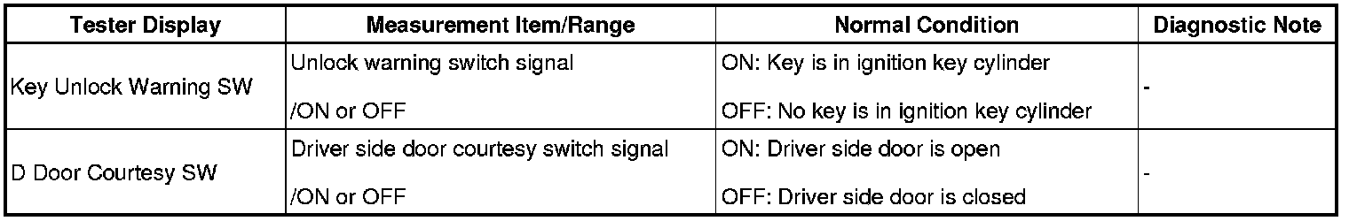 DOOR LOCK: KEY REMINDER WARNING SYSTEM: DATA LIST / ACTIVE TEST