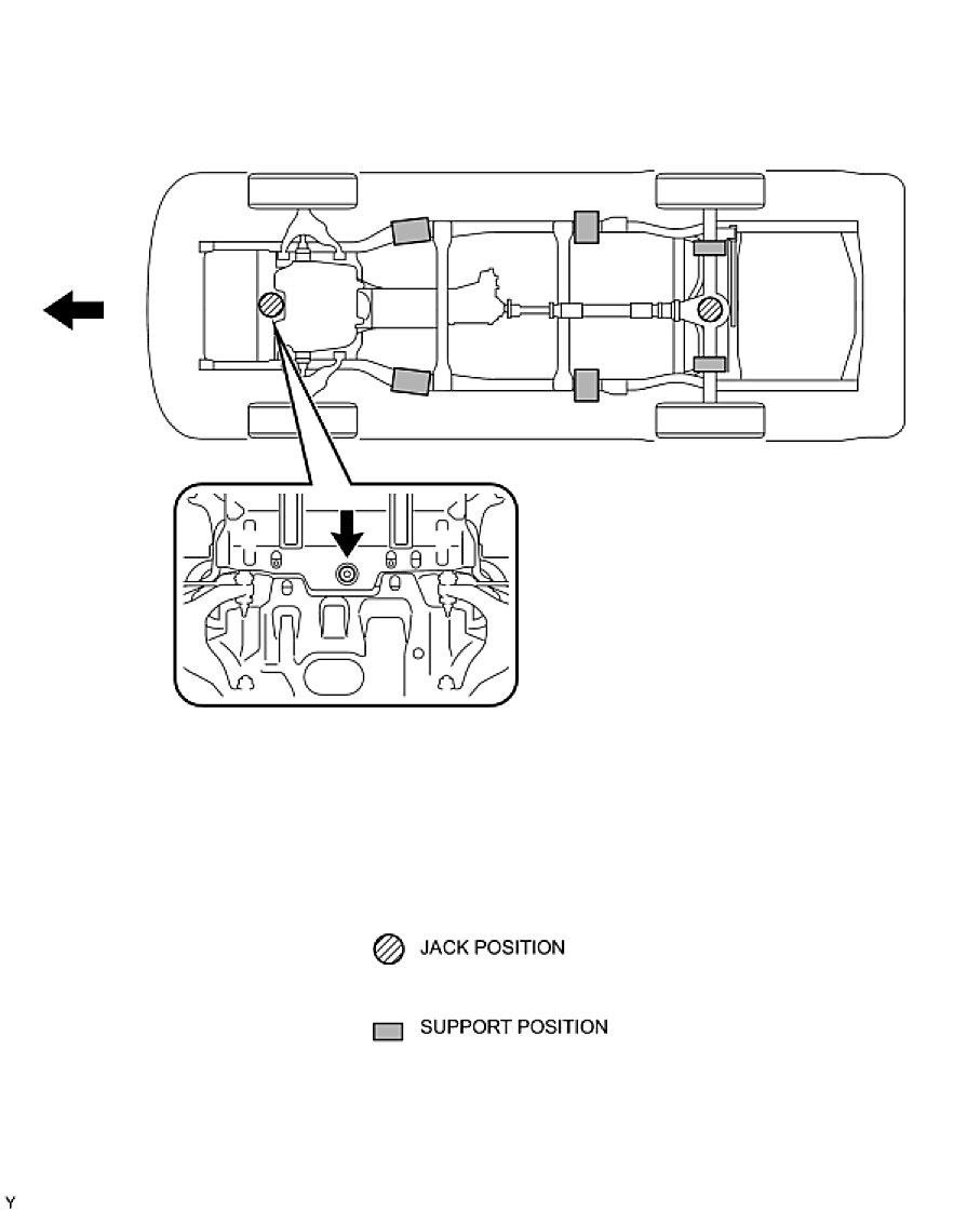 (b) Set the jack and rigid racks to the specified locations of the vehicle accurately.