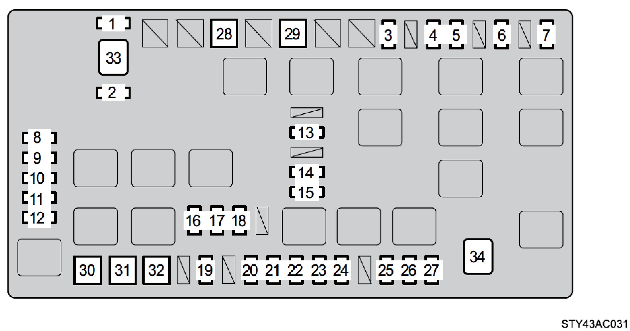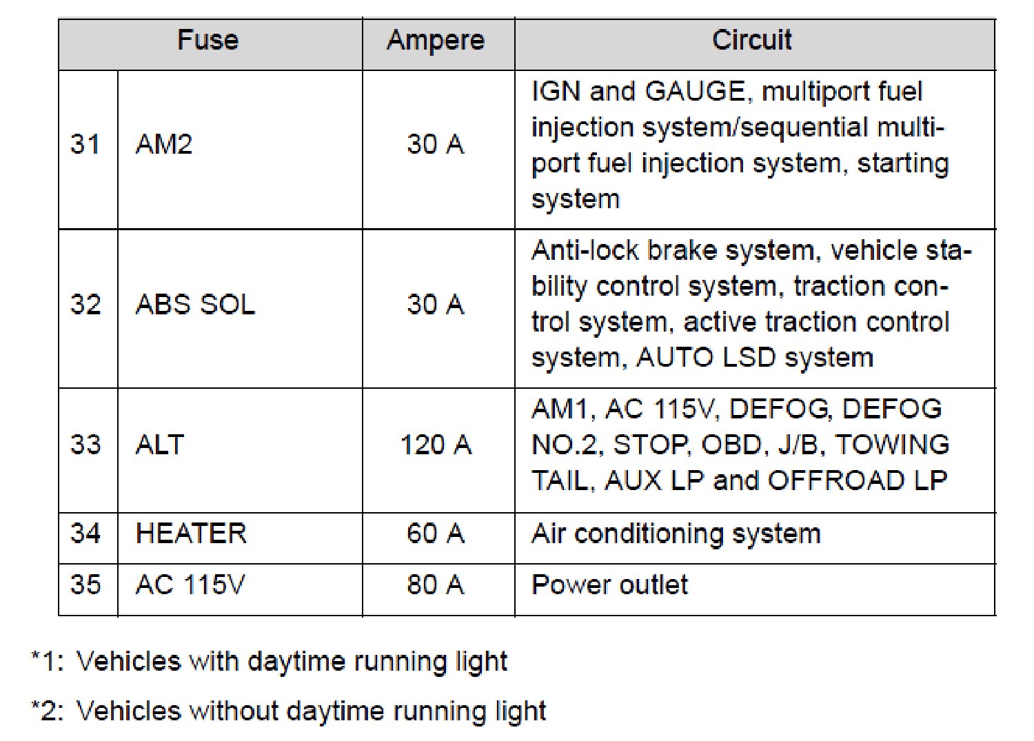 Fuse Layout and Amperage RatingsFuse Block Location - Engine Compartment (Type A):