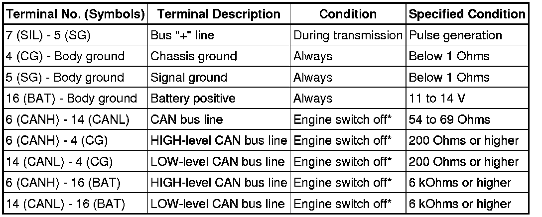 NOTE: *: Before measuring the resistance, leave the vehicle as is for at least 1 minute and do not operate the engine switch, any other switches, or the doors.