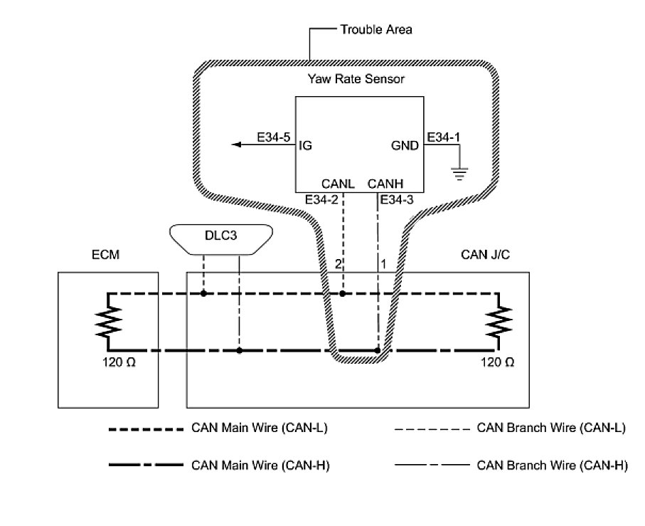 NG -- REPAIR OR REPLACE CAN BRANCH WIRE CONNECTED TO YAW RATE SENSOR (CAN-H, CAN-L)