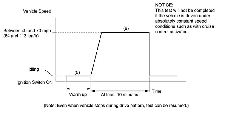 (6) Drive the vehicle at between 40 mph and 70 mph (64 km/h and 113 km/h) for at least 10 minutes.