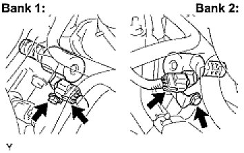 (b) Remove the 2 bolts, then remove the 2 camshaft timing oil control valves.