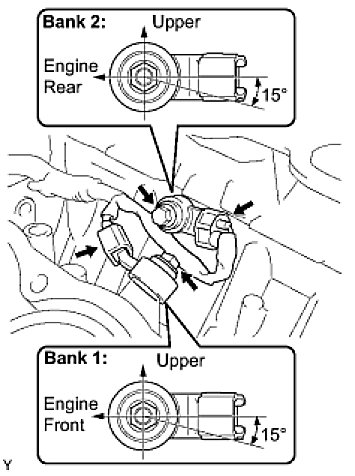 (a) Install the 2 knock sensors with the 2 bolts as shown in the illustration.